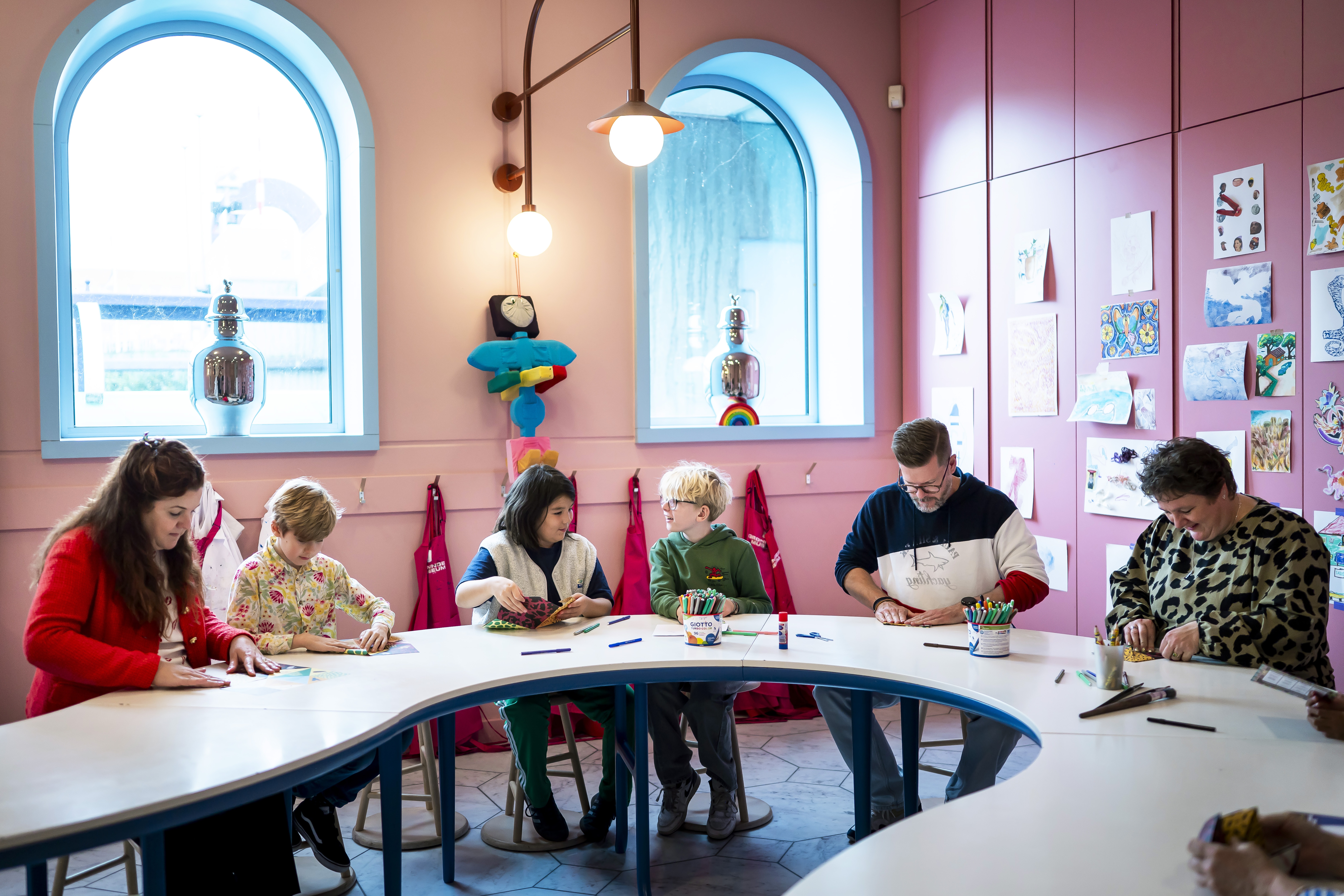 In het inloopatelier kunnen bezoekers zelf kunst maken. Ze kunnen de kamers in een droompoppenhuis ontwerpen, duelportretten schilderen in de stijl van De Ploeg, een Draken & Demonen-monoprint maken of een eigen kleurrijk gebouw creëren. Kinderen kunnen onder begeleiding van een ouder meedoen. Aanmelden is niet nodig en deelname is gratis bij een geldig museumticket. Het atelier is tijdens de herfstvakantie (regio Noord) dagelijks geopend vanaf 12:00 uur.